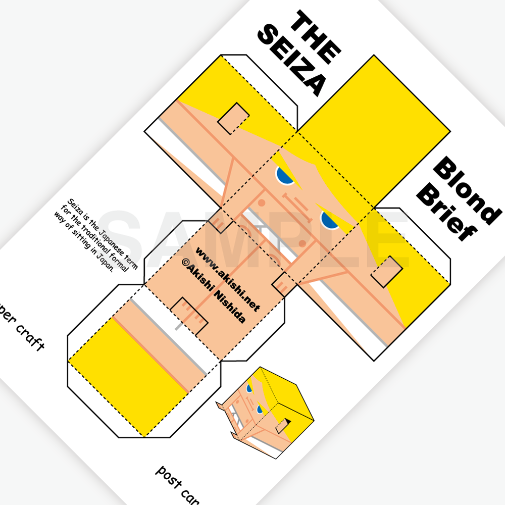 Postcard-sized papercraft from “The Seiza” series — a collection inspired by the Japanese way of sitting, Seiza.