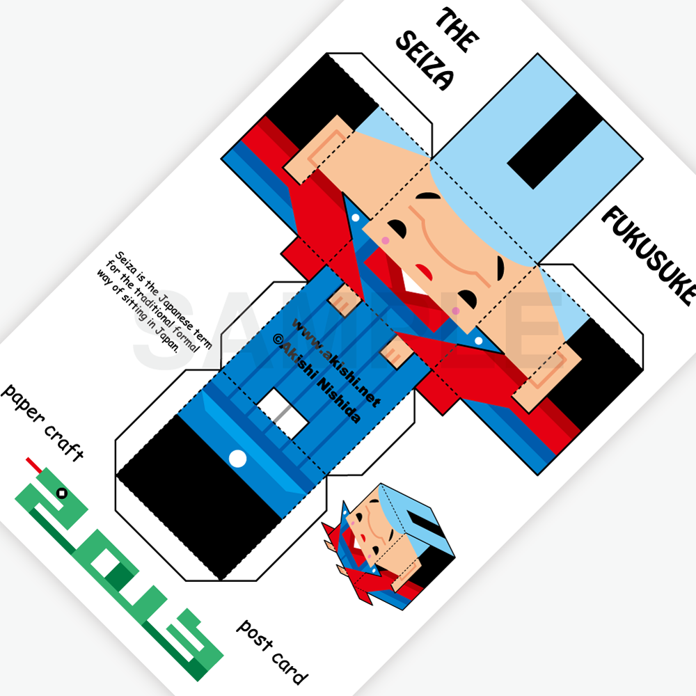 Postcard-sized papercraft from “The Seiza” series — a collection inspired by the Japanese way of sitting, Seiza.